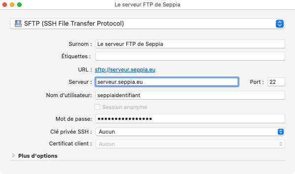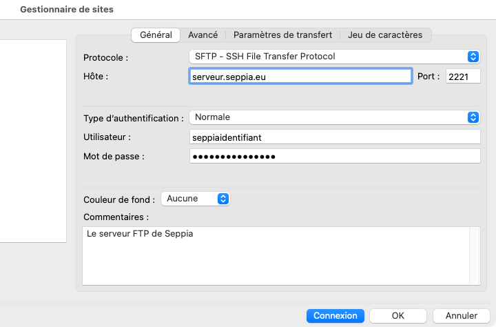 Hôte : sftp://serveur.seppia.eu