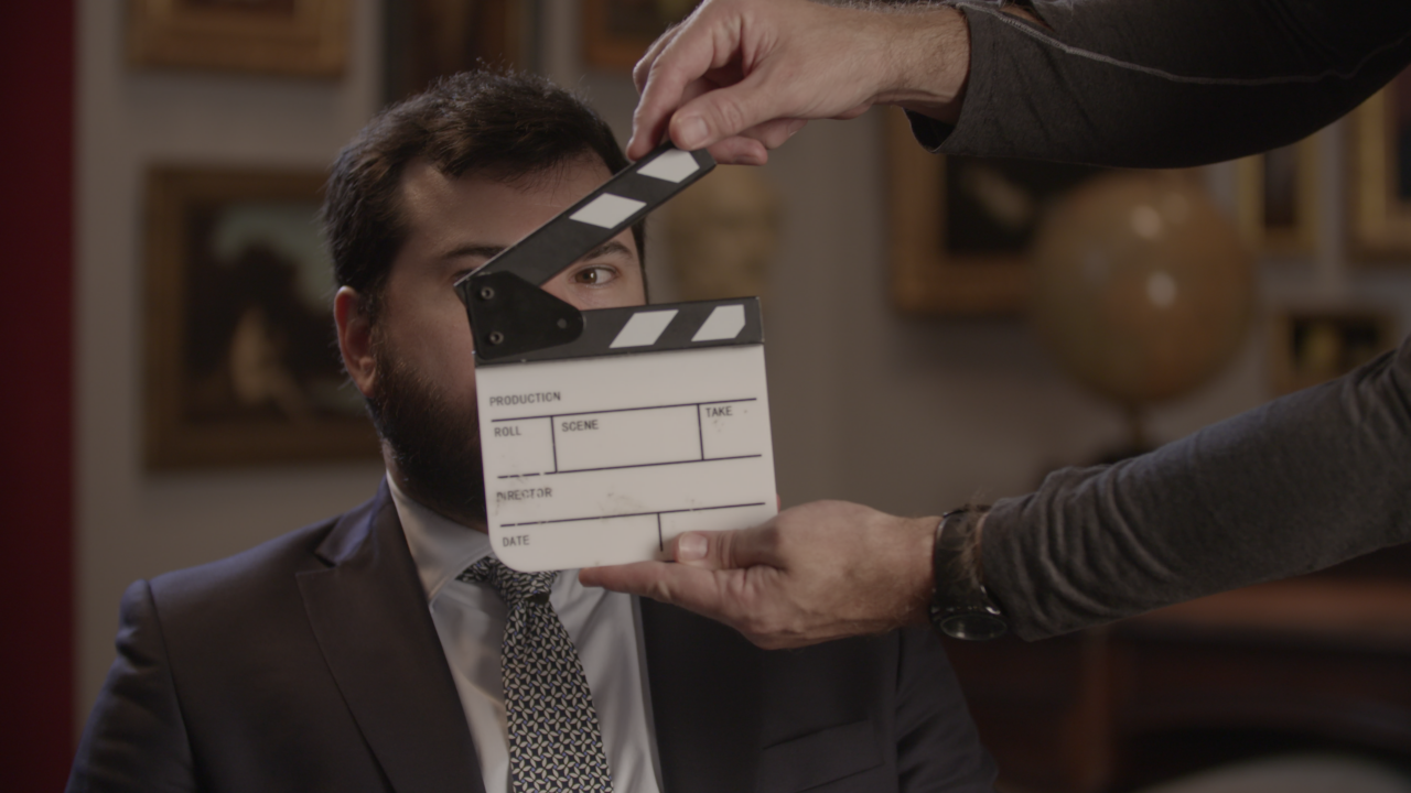 Par convention, on tient le clap à l’envers lorsqu’il s’agit d’un clap de fin.